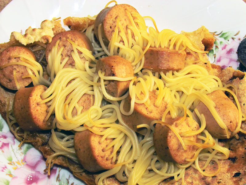 نه که پفک بده! آتیشش بزنی عین بنزین می سوزه! بعد صد بار بعد از خوردنش مسواکم بزنی از بین نمیره اون رنگه که رفته به دندونات! و نه اینکه کلا ضرر داره من نمی خوردم! بعد دیشب با بابایی رفتم بیرون دیدم و خریدم دیگه!(آخه چند روز بود داشتم هلاک می شدم براش!) بعد حالا شما فکر کنید برای پفک فقط رفتم! نع! من سوسیس کالباس هم نمی خورم، ازاون موقعی که شنیدم ماشین گوشت بَری، به جای گوشت،مرغ و گوسفند و اینا گوشت گربه حمل می کرده! بعد دیشب بنا به دستور پخت غذایی که دوست جونیمان در نت بهمان معرفی کرد رفتیم سه عدد سوسیس هم خریدیم! ایناهاشون!